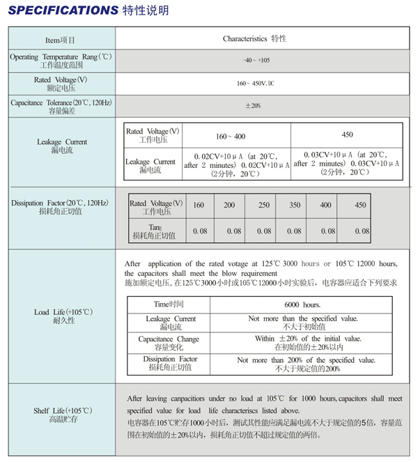 CD11GF Series:High quality model,specially designed of energy-saving lamps,electronic ballasts and LED constant current source,execllent endurance of high frequency ripple current and high temperature,extremely lpng life timeCD11GF系列:高質(zhì)型,專為節(jié)能燈、電子鎮(zhèn)流器、LED恒流源設(shè)計(jì)制造,耐高紋波,耐高溫,特長壽命